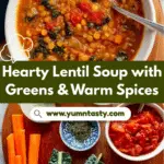 This hearty and flavorful vegan lentil soup is a wholesome, nutritious dish made with pantry staples and fresh ingredients. It features tender lentils simmered with aromatic spices, vegetables, and greens, finished with a bright splash of lemon juice to enhance the flavors. Perfect for a comforting meal any day of the week.