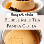 This Bubble Milk Tea Panna Cotta recipe combines the creamy, smooth texture of classic Italian panna cotta with the distinct flavors of milk tea and chewy brown sugar boba pearls for an indulgent dessert experience. Infused with Ceylon OP and Assam black tea leaves, the panna cotta has rich tea undertones, balanced with sweetness from sugar and topped with warm, syrup-coated boba pearls. Perfect for a sophisticated Asian-inspired dessert that delights with every bite.