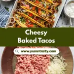 Cheesy Baked Tacos are a delicious and crowd-pleasing meal featuring seasoned ground beef, black beans, and melted TexMex cheese baked inside crispy taco shells. Topped with your favorite fresh toppings and sauces, these tacos offer a flavorful and satisfying dish perfect for gatherings or family dinners.
