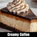 This indulgent Coffee Cheesecake features a rich Oreo crust, a creamy espresso-infused cheesecake filling, a glossy chocolate espresso ganache, and a fluffy coffee whipped cream topping. Perfectly balanced flavors and a smooth texture make it an irresistible dessert for coffee lovers and cheesecake fans alike.