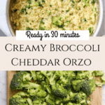 This Broccoli Cheddar Orzo is a creamy and cheesy one-pot dish, packed with tender broccoli florets and sharp cheddar cheese. Perfect for a quick and cozy weeknight meal, it comes together in under 30 minutes and offers a comforting blend of flavors and textures.