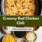 Want to impress friends or family? Spoon your chili into bread bowls or stuff it into baked potatoes for a fun, hearty twist. You can also turn it into a layered dip for parties by layering chili, sour cream, shredded cheese, and chopped green onions in a dish. No matter how you serve it, this Creamy Red Chicken Chili Recipe is sure to be the star of the table.