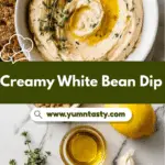 3. Serve: Transfer the white bean dip to a serving bowl. Garnish with a drizzle of extra olive oil and a sprinkling of fresh thyme leaves for aroma and presentation.