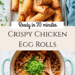 Crispy Chicken Egg Rolls filled with savory ground chicken, shredded carrots, cabbage, and green onions, wrapped in crispy egg roll wrappers. Perfect as a crunchy, flavorful appetizer served hot with your favorite dipping sauce.