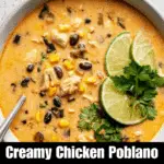 This Easy Chicken, Poblano, and Black Bean Soup is a creamy, flavorful small batch recipe perfect for a cozy meal. Made with shredded chicken, sautéed poblano peppers, black beans, corn, and a blend of spices, it’s a delicious and hearty soup that comes together in under an hour. Garnished with fresh cilantro and lime juice, this comforting American soup offers a perfect balance of smoky, creamy, and zesty flavors.