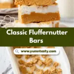 Delightful Fluffernutter Bars featuring a rich peanut butter cookie base layered with gooey marshmallow fluff and topped with bits of peanut butter cookie dough. These bars combine soft, chewy textures with sweet, nutty flavors perfect for dessert or a special treat.