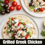 PrintGrilled Greek Chicken Pitas with Fresh Salad and Feta Dill Sauce Recipe