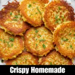 Make sure to squeeze out as much moisture as possible from the shredded potatoes before cooking, cook over medium-high heat, and avoid overcrowding the pan. Finishing them in the oven also helps achieve a crispy crust.