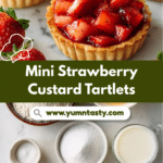 These Mini Strawberry Custard Tartlets feature a flaky crust filled with smooth vanilla pastry cream and topped with juicy fresh strawberries glazed in apricot preserves. Perfect bite-sized treats for parties and gatherings, they come together quickly and yield 32 stunning tartlets that impress with both flavor and presentation.