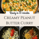 A rich and creamy Peanut Butter Curry that combines aromatic spices, coconut milk, and peanut butter for a unique and flavorful vegetarian dish. This hearty curry features chickpeas and broccoli, simmered to perfection, making it a perfect meal for a cozy dinner served with rice or naan.