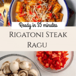The Rigatoni Steak Strip Ragu with Crispy Tomatoes & Parmesan Recipe is a delightful fusion of hearty pasta, tender steak strips, and a vibrant, savory sauce that brings every bite to life. The combination of perfectly cooked rigatoni enveloped in a rich ragu, dotted with sweet bell peppers and earthy mushrooms, topped with crispy cherry tomatoes and freshly grated Parmesan, makes for an unforgettable meal. Whether you’re cooking a cozy dinner for two or impressing guests, this recipe strikes the perfect balance of comfort and sophistication in under 40 minutes.