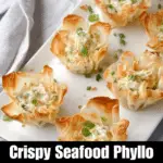 Seafood phyllo cups don’t freeze well after baking due to the delicate nature of the phyllo sheet. However, you can prepare and assemble the cups (unbaked), then freeze the filled phyllo cups on a baking sheet until solid. Transfer them to a freezer-safe bag, and when ready to enjoy, bake straight from frozen, adding a few extra minutes to the cooking time.