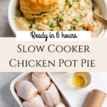 If you want to keep this Slow Cooker Chicken Pot Pie Recipe on hand for busy days, freeze the cooked filling (without biscuits) in freezer-safe containers or bags for up to 3 months. Thaw overnight in the fridge before reheating for best results.