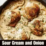 A creamy and flavorful Sour Cream and Onion Chicken recipe that features tender chicken breasts cooked to golden perfection, then smothered in a rich sauce made from sautéed onions, garlic, chicken broth, Worcestershire sauce, and full-fat sour cream. This quick and comforting dish is perfect for a satisfying weeknight dinner and serves four.