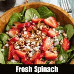 This salad is best enjoyed fresh and doesn’t freeze well due to the delicate nature of the spinach and strawberries. Freezing will compromise the textures and overall taste, so it’s recommended to enjoy the salad within a day or two.