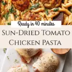 A delicious and creamy Sun-Dried Tomato Chicken Pasta featuring tender chicken thighs, sun-dried tomatoes, fresh spinach, and a rich parmesan cream sauce, ready in just 40 minutes for a perfect weeknight dinner.