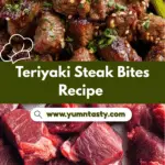 These Teriyaki Steak Bites are a quick and flavorful dish perfect as an appetizer, snack, or main course. Tender steak pieces marinated in teriyaki sauce are pan-seared to achieve a crispy, caramelized exterior with a juicy interior. Easily prepared in a skillet, they can be customized to your preferred doneness and served with your favorite sides or dipping sauces.