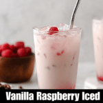 Serve your Vanilla Raspberry Iced Latte Recipe in clear glasses to show off those beautiful layers of espresso, raspberry, and milk swirling together. Use fun reusable straws or even add a splash of whipped cream topped with raspberry drizzle to transform this homemade favorite into an indulgent treat that feels café-worthy.