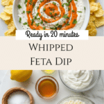 This Whipped Feta Dip is a creamy, tangy appetizer featuring smooth whipped feta cheese blended with sour cream, olive oil, honey, and lemon, topped with a homemade hot honey drizzle made from honey and red pepper flakes. Perfect for serving with pita chips, crostini, or fresh vegetables, this easy and flavorful dip is ready in just 20 minutes and makes a delightful addition to any party or snack table.