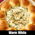 This White Pizza Dip with Cheesy Dipping Rolls Recipe has quickly become one of my favorite appetizers to bring to any gathering because it’s easy, comforting, and downright addictive. Whether you’re serving it for game day, a family dinner, or a casual party, the melty cheese, soft dough, and fresh basil make every bite a joyous occasion. Give it a try and watch how fast it disappears!